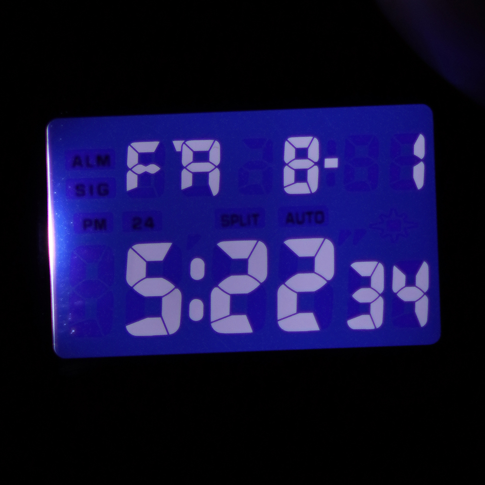 Podświetlenie LED : dioda elektroluminescencyjna umożliwiający sprawdzenie godziny w warunkach pogorszonej widoczności oraz w całkowitych ciemnościach.