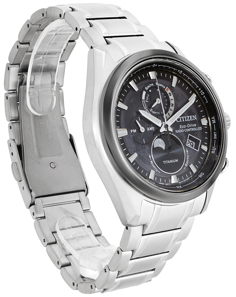 Koperta i bransoleta Tytanowa: tytan 40% lżejszy od stali, ekstremalnie wytrzymały, miły w dotyku oraz posiadający właściwości antyalergiczne (możliwość skrócenia do podanego obwodu ręki)